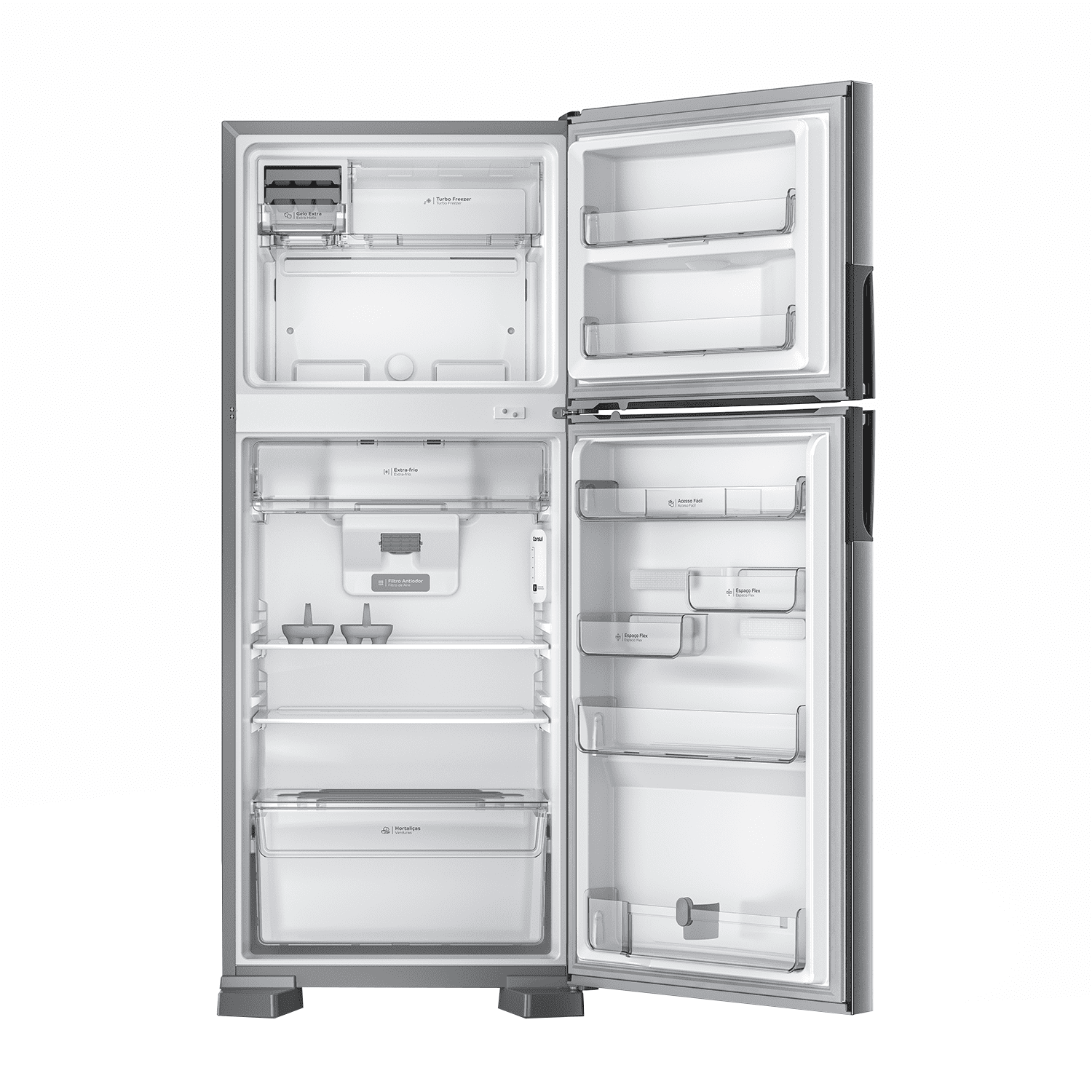 La Heladera Consul Inox CRM50 Inox de 438 litros con amplio congelador ofrece gran flexibilidad y capacidad para organizar todo a tu gusto: se acabó tener que lidiar con el almacenamiento de alimentos. Gracias a sus compartimentos extraíbles, podés guardar todo lo que necesitas en la puerta del refrigerador, y la función Turbo acelera el proceso de enfriamiento, incluso cuando está lleno. El refrigerador también cuenta con un filtro antiolor que elimina los malos olores y el «sabor a heladera» del agua. Práctico, espacioso y con un diseño elegante.